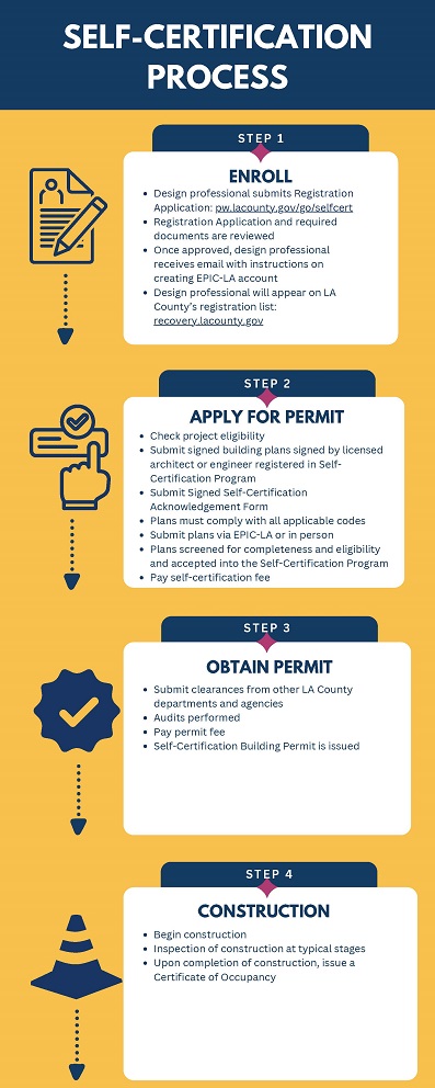 If you have questions for county staff about the self-certification process, please email selfcert@pw.lacounty.gov.